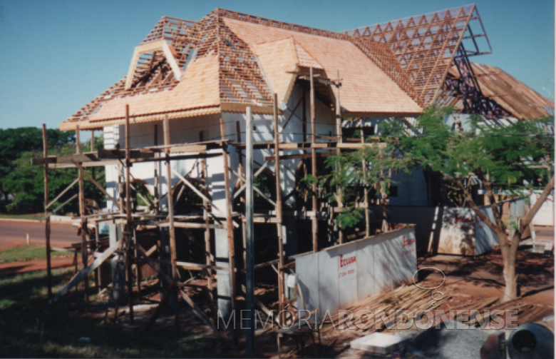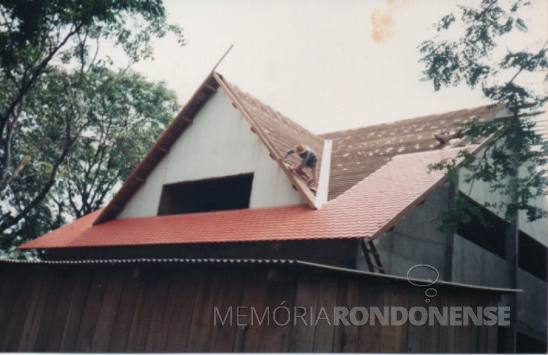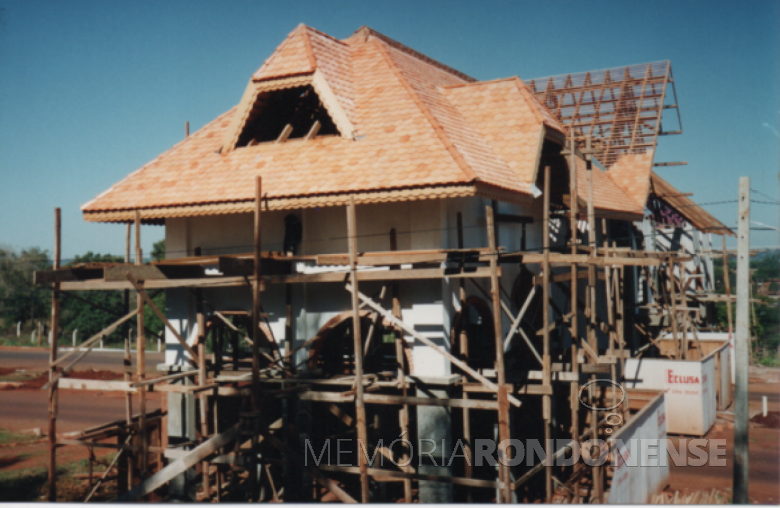 Início da colocação do telhado no portal de acesso a Marechal Cândido Rondon.