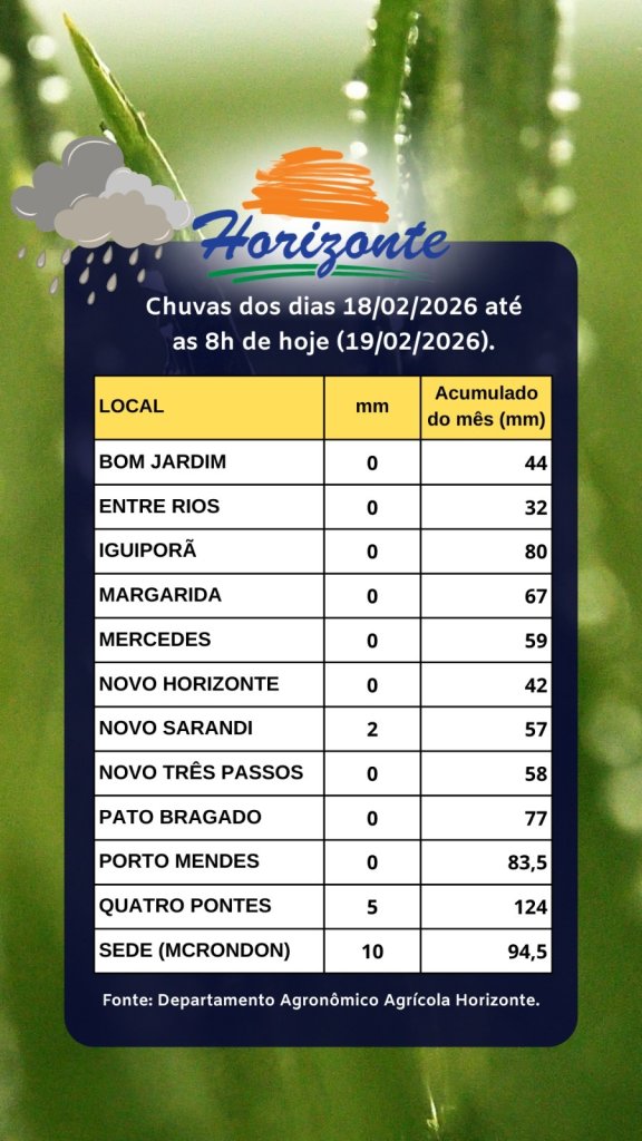 2024 — É domingo. O dia amanhece na cidade de Marechal Cândido Rondon (PR) com temperatura de 22 graus. Ventos do quadrante Nordeste, fracos, persistentes até o começo do final da tarde. Céu com presença de nebulosidades tipo stratus e a noroeste vista de cumulonimbus. Durante a tarde, forte presença de nuvens tipificadas como nimbostratus. Ao final da tarde, forte pancada de chuva na cidade e área suburbana.