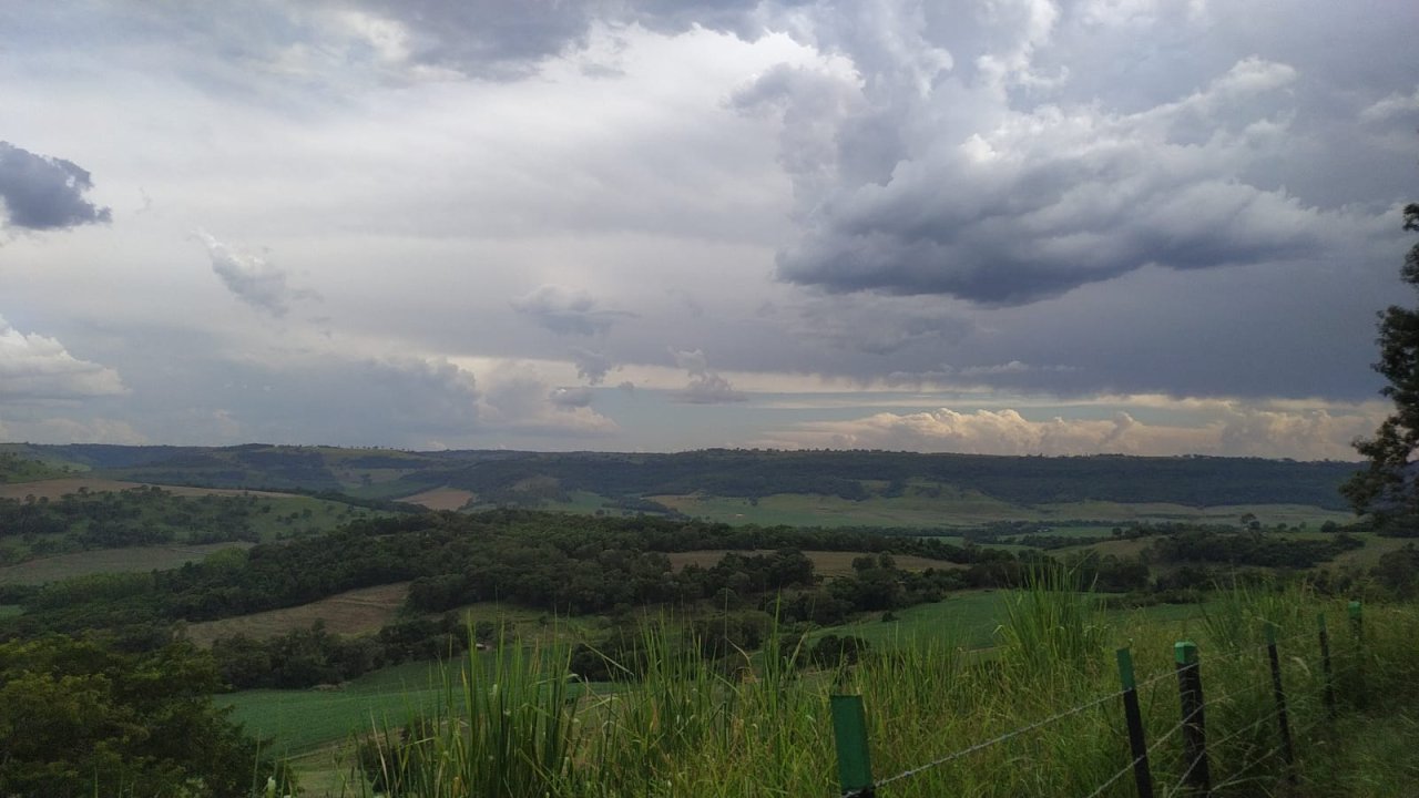 À tarde, presença de formações de nuvens cumulus. Distante, presença de nuvens cumulonimbus.