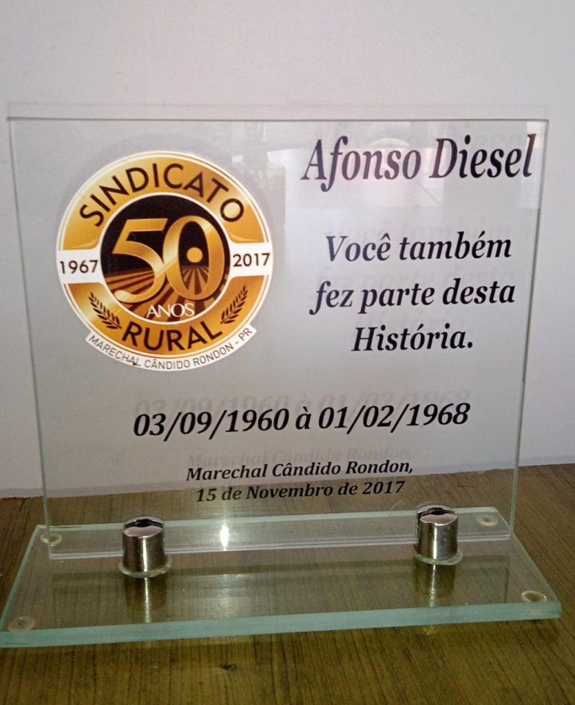 Imagem: Acervo da Familiá - FOTO 6 - || Laurel recebido por Afonso Diesel por sua gestão como 1º presidente do Sindicato Patronal Rural de Marechal Cândido Rondon.
