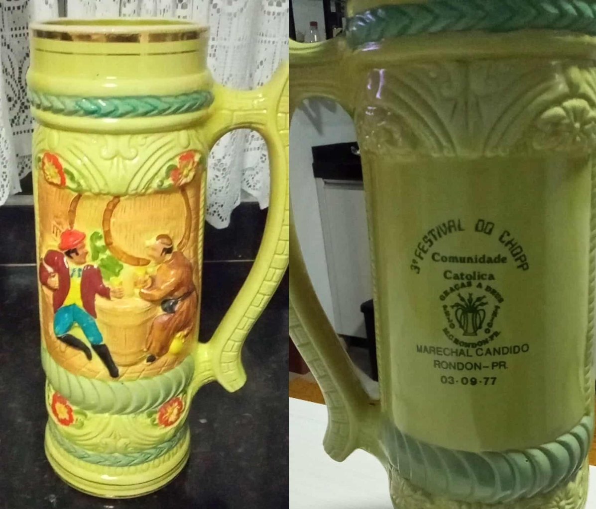 Imagem: Acervo Memória Rondonense - FOTO 11 -|| Caneco (anverso e verso) do 3º Festival do Copp da Matriza Católica Sagrado Coração de Jesus, em setembro de 1977.