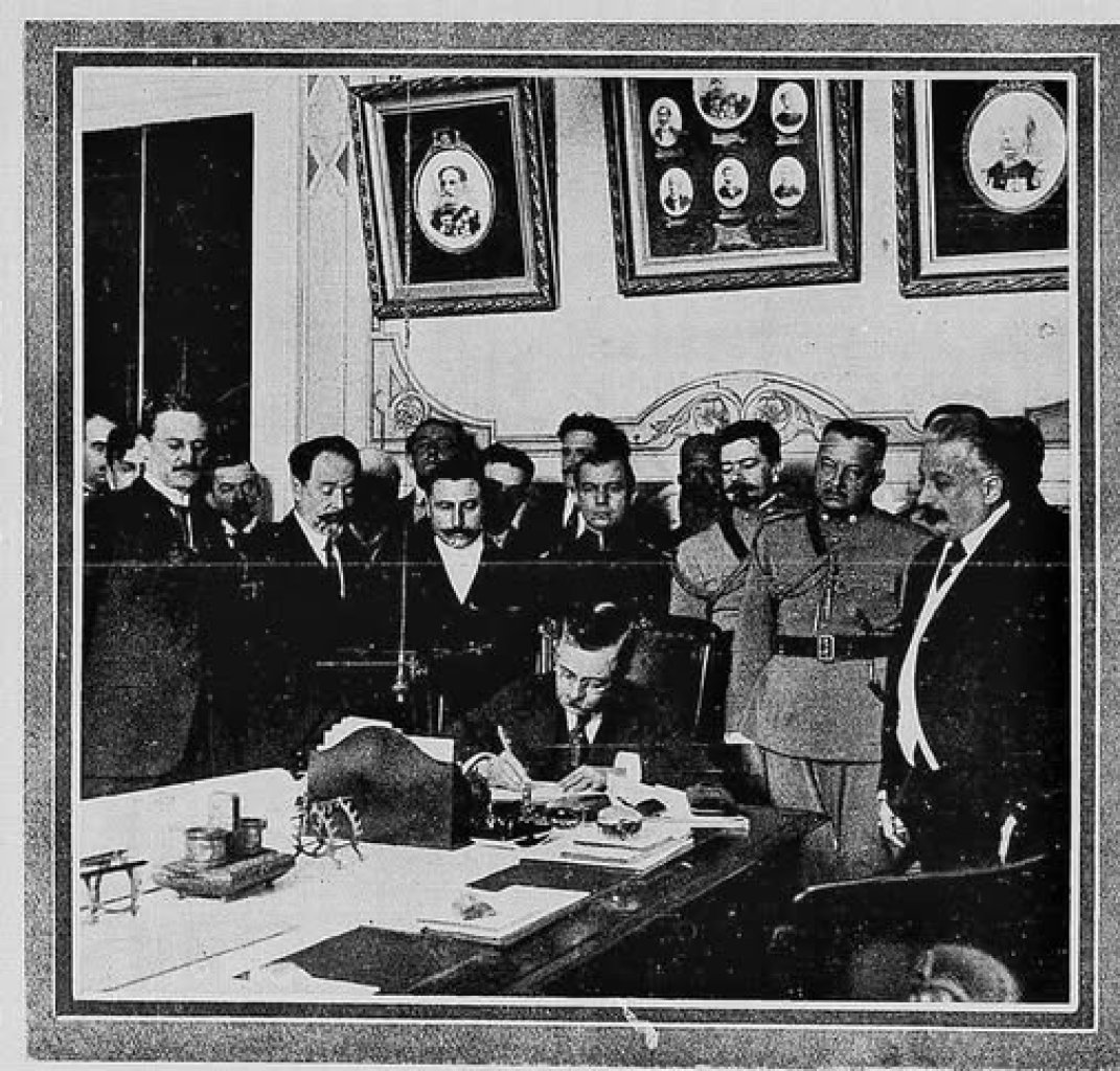 Imagem: Arquivo Público do Rio Grande do Sul - FOTO 2 -|| Epitácio Pessoa, presidente da República, assinando o Decreto Legislativo que autorizou o translado dos despojos de D. Pedro II e de sua esposa, em setembro de 1920.