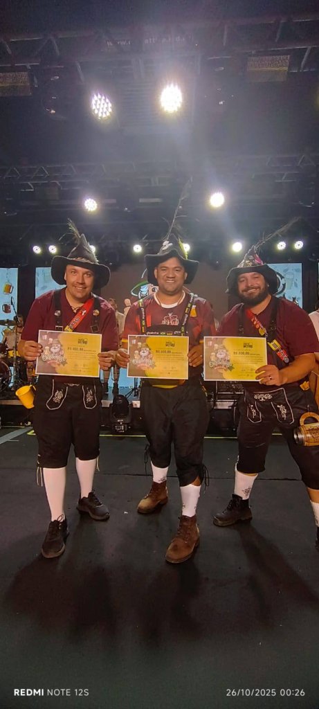 2025 — Valdir Dias sagra-se campeão do Concurso Chope em Metro na Oktoberfest 2025 de Marechal Cândido Rondon (PR). Ele sorveu a pepita de chope em 16,24 segundos Na segunda colocação ficou Adriano Klein, com o tempo de 17,71 segundos; e Marlon Hubner ficou em terceiro lugar com 19,05 segundos (Prefeitura de Marechal Cândido Rondon). -- FOTO 30 --