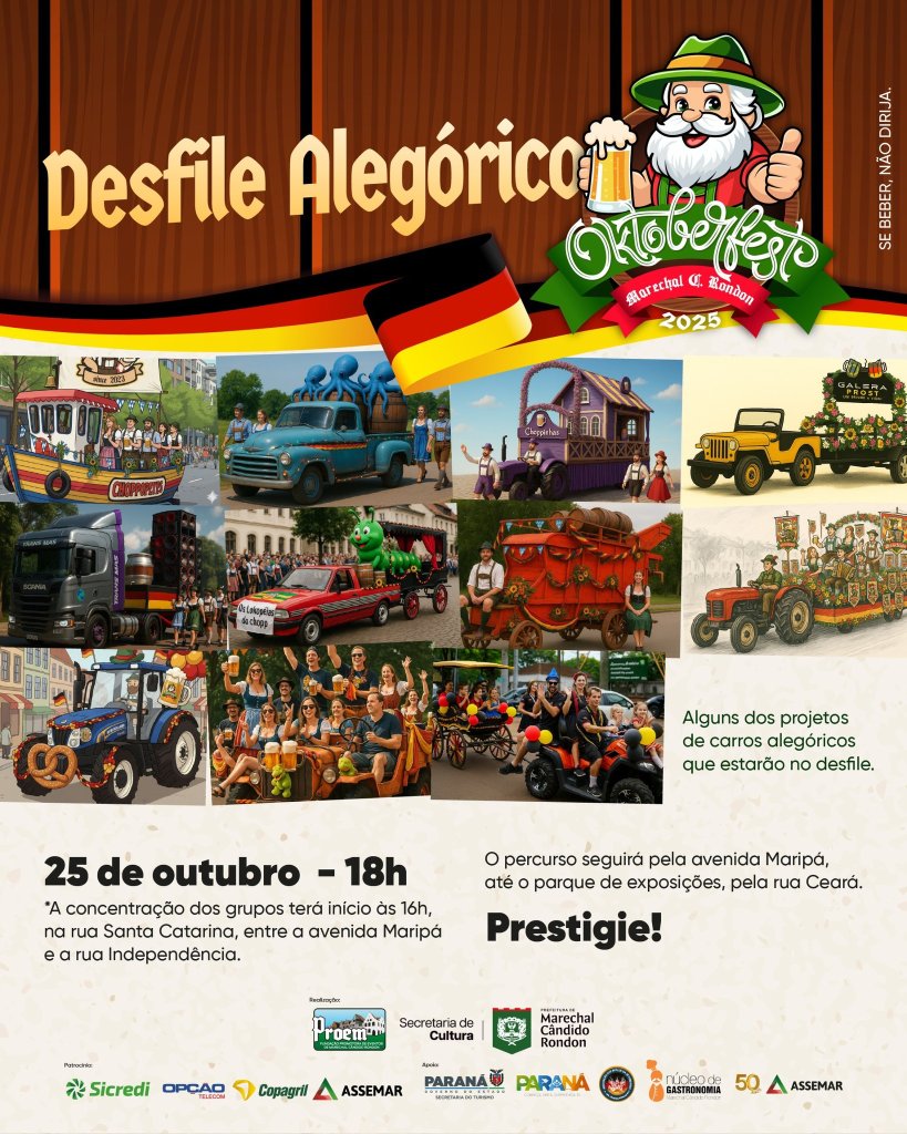 2025 — É realizado o Desfile Alegórico¹ da Oktoberfest 2025 de Marechal Cândido Rondon pela Avenida Maripá até o Centro de Eventos do Parque Exposições. A saída do desfile acontece na Rua Santa Catarina, em frente ao acesso da Rádio Difusora do Paraná (Prefeitura Municipal de Marehal Cândido Rondon). -- FOTO 28 --