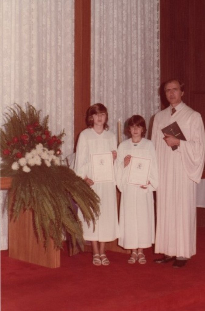 1983 — São confirmadas na Igreja Congregação Cristo, vinculada à Igreja Evangélica de Confissão Luterana do Brasil (IELB), as rondonense Sandra e Sara Meine, filha do casal Loyre (nascida Seefeldt) e Dorival Meine, pelo pastor Waldemar Martin (colaboração de Loyre Meine). -- FOTO 6 --