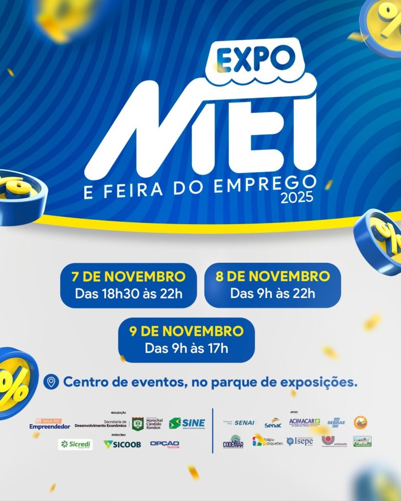 2025 — Começa e segue até o dia 09 seguinte, a Expomei e Feira de Emprego 2025 de Marechal Cândido Rondon (PR), no Centro de Eventos do Parque de Exposições Álvaro Dias (O Presente). -- FOTOS 31 e 32 --