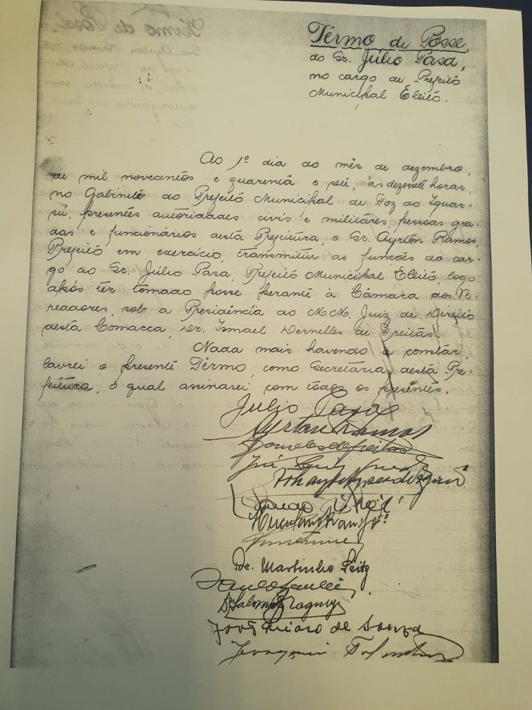1946 — Toma posse como prefeito eleito de Foz do Iguaçu, Julio Pasa. -- FOTO 5 --