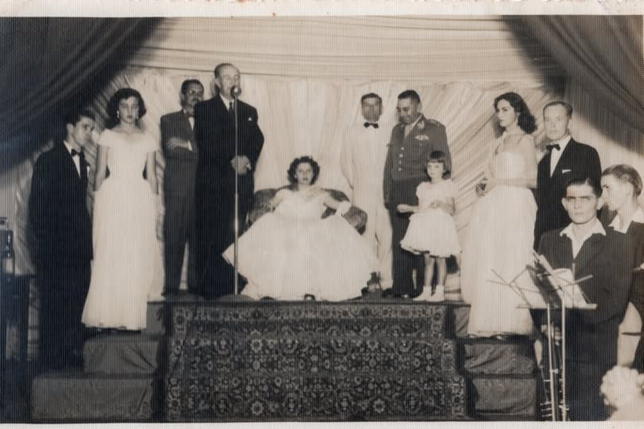 "ao seu lado, de terno branco meu avô Guerino Vicari" (informação da detentora da fotografia, citada abaixo) e as princesas Luci Zardo¹ e Maria Augusta Fernandes² (Nana).