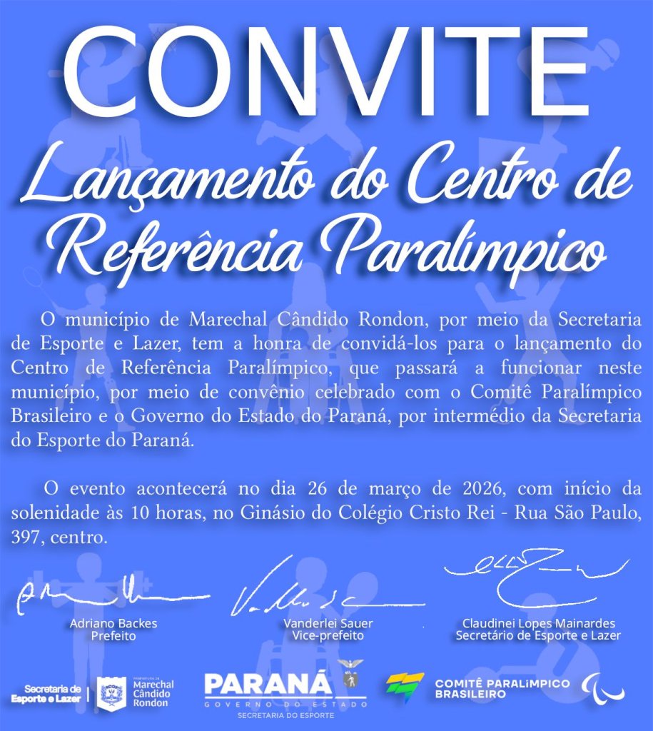2026 — É realizado o lançamento do Centro de Referência Paralímpico de Marechal Cândido Rondon (PR). -- FOTO 41 --