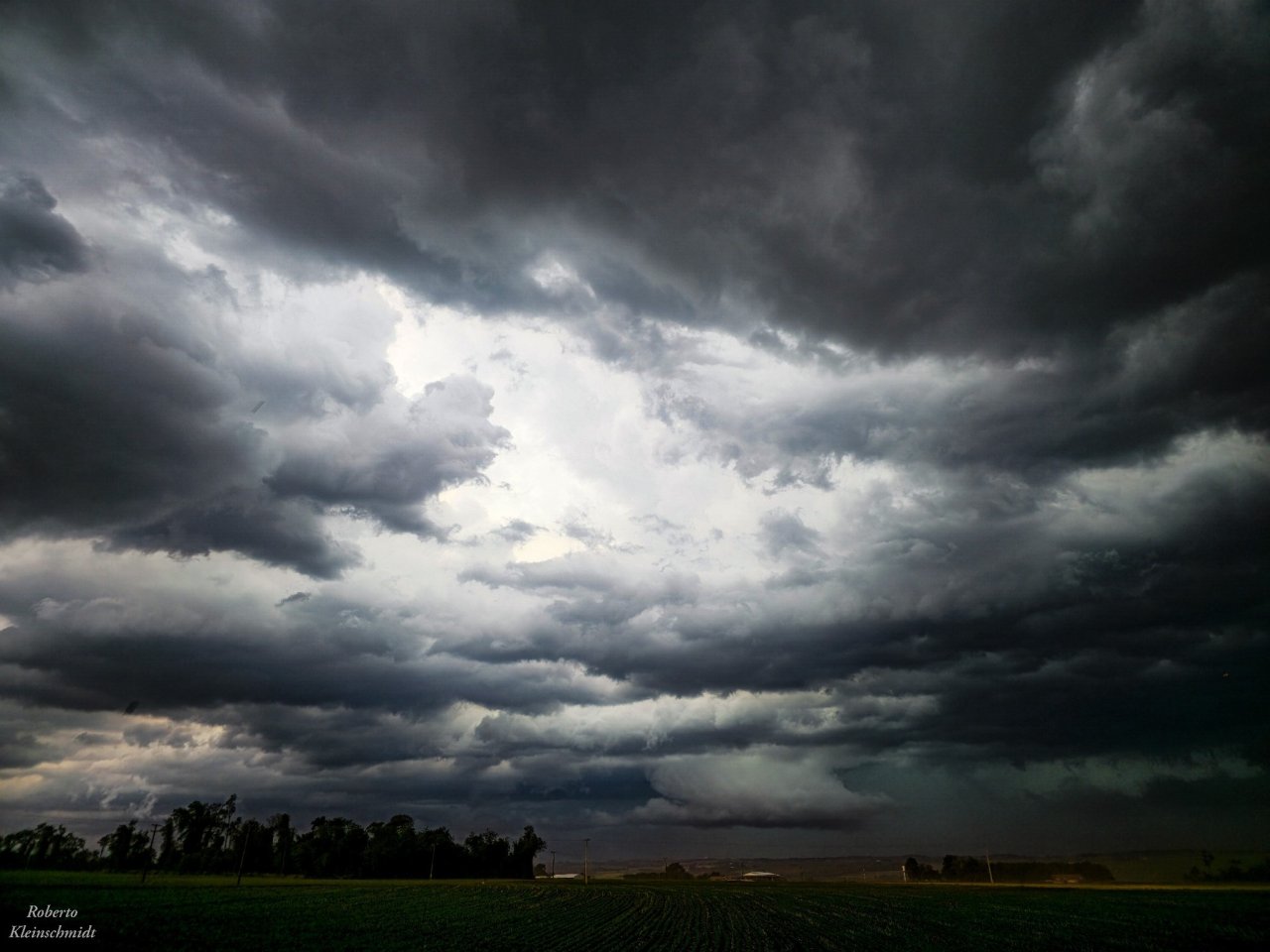 2025 — É quinta-feira. O amanhecer na cidade de Marechal Cândido Rondon (PR) tem temperatura de 23 graus. Ventos do quadrante Nordeste, fracos. Céu encoberto com nebulosidade tipificada como cirrostratus. Presença de névoa seca de fumaça. No período vespertino, presença de nuvens tipo nimbostratus e, instantes mais tarde também presença de nuvens tipo cumulonimbus.
