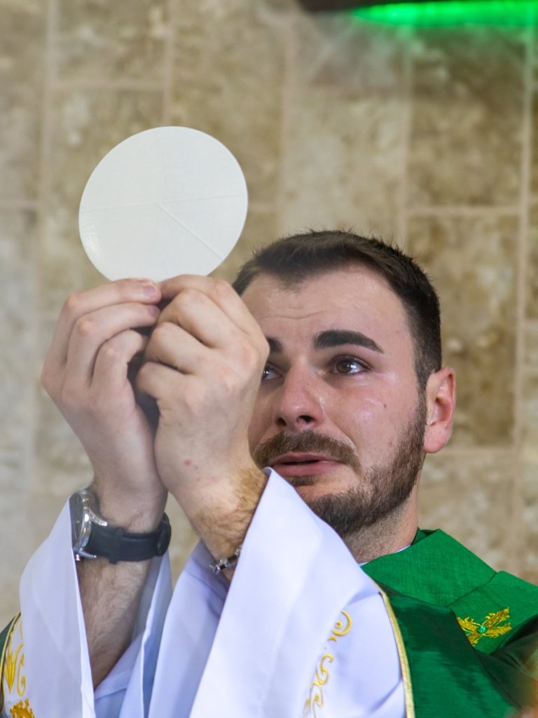 Imagem: Acervo da família - FOTO 29 - || Néo-sacerdote Marcelo Luiz Dalmagro oficiando a sua 1ª missa, em outubro de 2025.