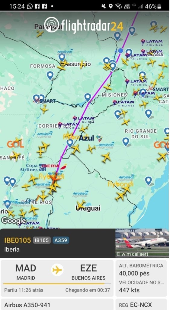 Imagem: Acervo Flightradar - FOTO 22 - || Identificação da rota do avião da Iberia em sua rota para Buenos Aires, à meia-tarde, de 05 de outubro de 2024.