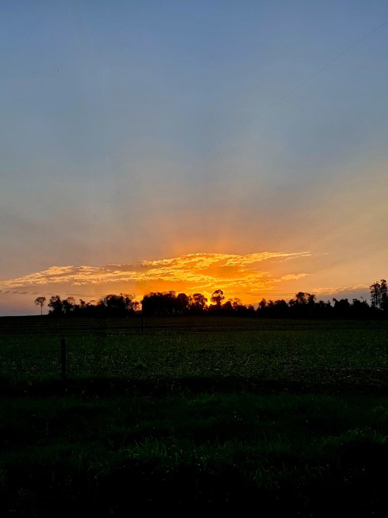 2025 — É domingo. O amanhecer na cidade de Marechal Cândido Rondon (PR) tem temperatura de 21 graus. Ventos do quadrante Noroeste, moderados. Céu sem nebulosidade. À tarde, presença de nuvens tipo altocumulus.