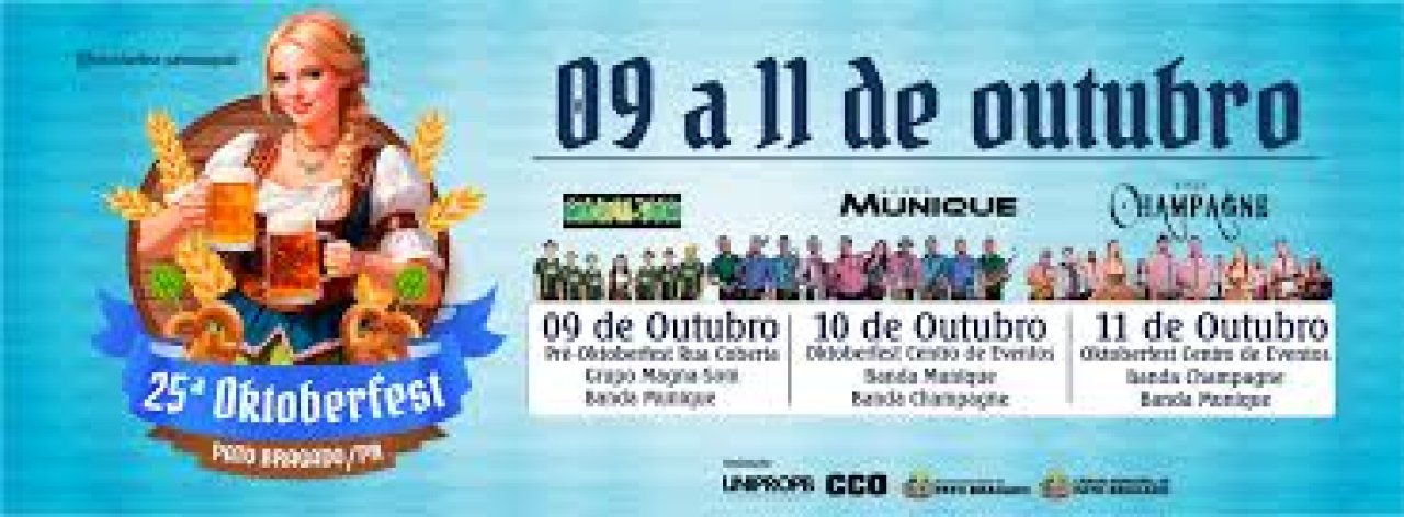 2025 — É aberta a 25ª Oktoberfest da cidade de Pato Bragado (PR). O festival segue até o dia 11 superveniente (Tribuna do Oeste. Marechal Cândido Rondon: ed. 09 de outubro de 2025, p. 3). -- FOTO 40 --