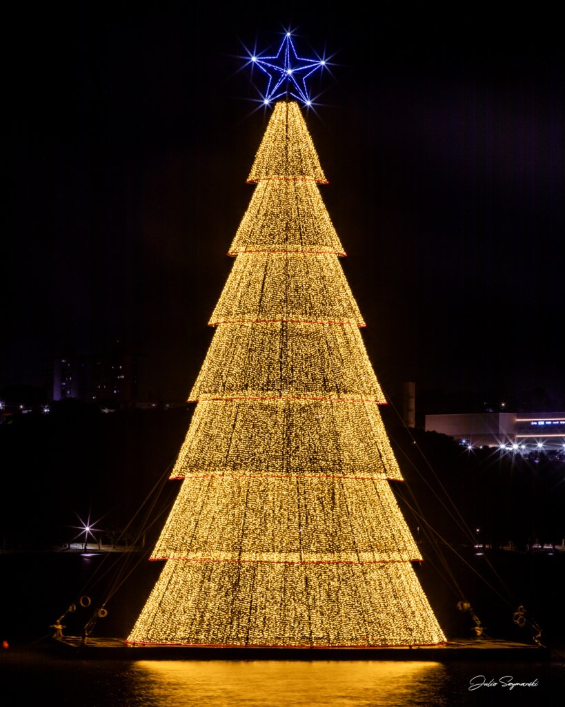 2025 — É inaugurada a primeira árvore de Natal flutuante da cidade paranaense de Cascavel. "Instalada no Lago Municipal, tem 24 metros de altura e uma estrela de 3 metros." (FOTOGRAFIA, Julio Szymanski, em postagem em sua página no Facebool, em 15 dez. 2025). -- FOTO 38 --
