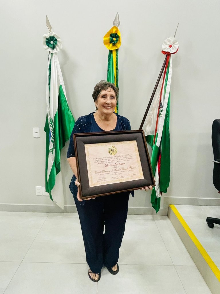 2025 — A professora e historiadora rondonense Venilda (nascida Mees, grifo nosso) Saatkamp, é agraciada com o título de "Cidadã Honorária de Marechal Cândido Rondon (PR), em sessão solene da Câmara de Vereadores (CV-MCR). -- FOTO 34 --