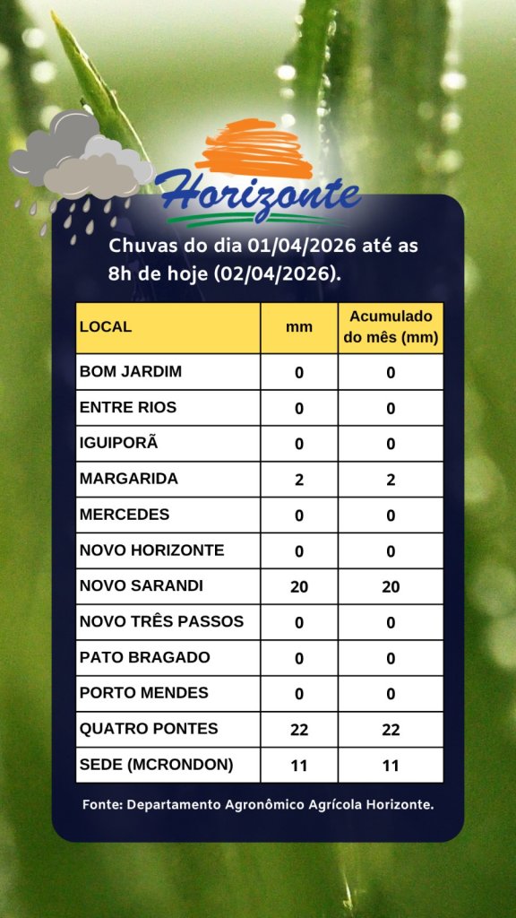 O desconto benefica agricultores dos estados do Paraná, Mato Grosso do Sul, Santa Catarina e Rio Grande do Sul. A perda no Paraná é na ordem de 45% na soja e 32% no milho (O Presente. Marechal Cândido Rondon: ed. 08 abr. 2022, p. 34).