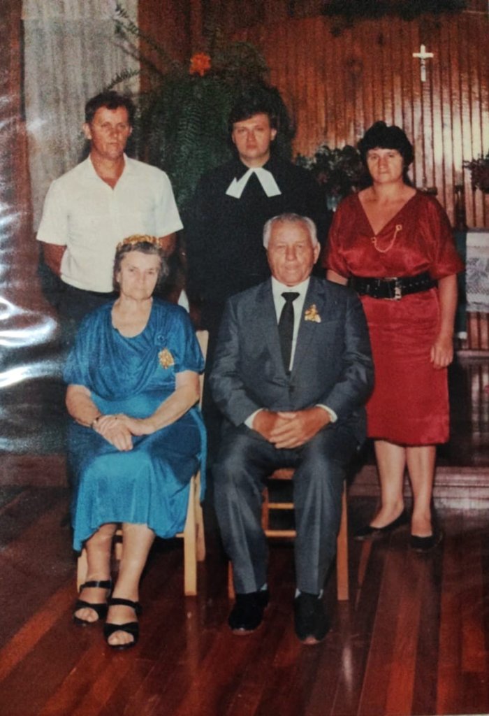 O casal pioneiro chegou muito jovem ao Oeste Paranaense e hoje, em avançada idade, optam continuar nas mesmas terras que adquiriram, com auxílio da filha Tusnelda e esposo.