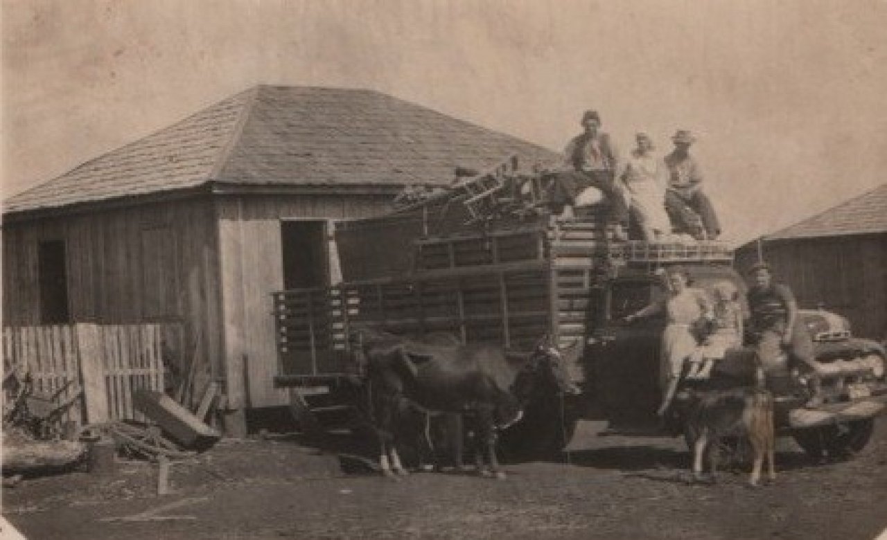 Em cima do caminhão, o pai, a mãe, filho Nelson.